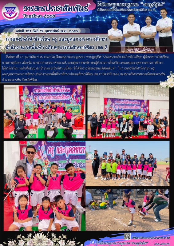 วันที่ 17 กุมภาพันธ์ 2569 โรงเรียนอนุบาลบางมูลนาก “ราษฎร์อุทิศ” ได้นำนักเรียน ระดับชั้นอนุบาล เข้าร่วมแข่งขันกีฬาเบบี้ตอง ซึ่งได้รับรางวัลรองชนะเลิศอันดับที่ 1 ในการแช่งขันกีฬานักเรียน ครูและบุคลากรทางการศึกษา สำนักงานเขตพื้นที่การศึกษาประถมศึกษาพิจิตร เข