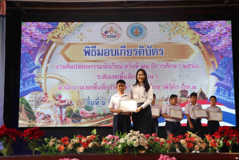 วันที่ 6 มีนาคม พ.ศ.2569 โรงเรียนอนุบาลบางมูลนาก “ราษฎร์อุทิศ” นำโดยนายดำรงค์เกียรติ โพธิ์พุก ผู้อำนวยการสถานศึกษา ,นางสาวสุนันทา เพ็งแจ้ง,นางสาวกาญจนา คำทะวงค์,นายสุทธา สายทัด รองผู้อำนวยการสถานศึกษา ครูและบุคลากรทางการศึกษา ได้มีพิธีมอบเกียรติบัตร งานศิลปหัตถกรรมนักเรียน ครั้งที่ 73 ปีการศึกษา 2568 ระดับอำเภอบางมูลนาก และระดับเขตพื้นที่การศึกษา สำนำงานเขตพื้นที่การศึกษประถมศึกษาพิจิตร เขต 2 ณ เวทีเลื่องลือ โรงเรียนอนุบาลบางมูลนาก “ราษฎร์อุทิศ”