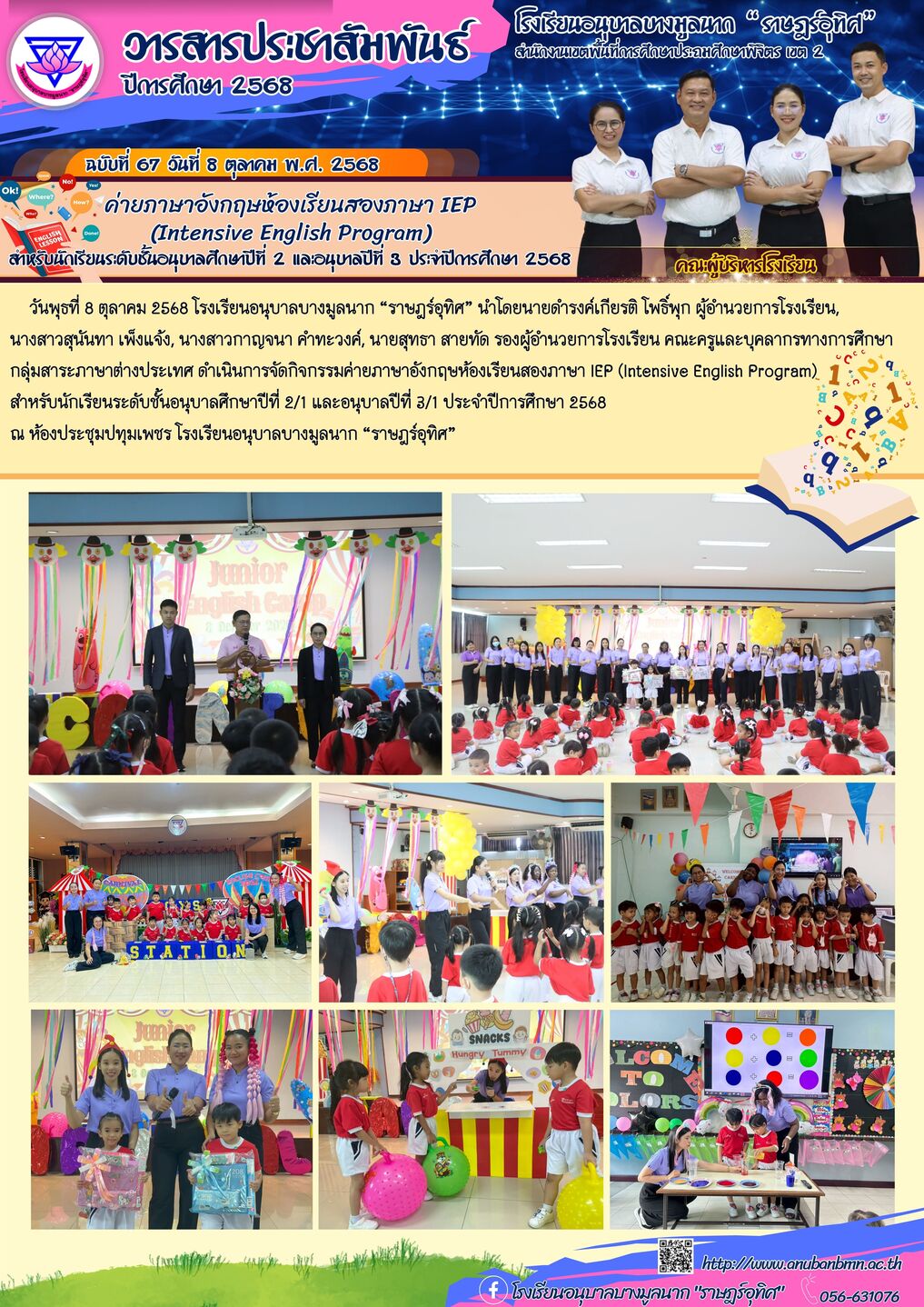 ค่ายภาษาอังกฤษห้องเรียนสองภาษา IEP (Intensive English Program) สำหรับนักเรียนระดับชั้นอนุบาลศึกษาปีที่ 2 และอนุบาลปีที่ 3 ประจำปีการศึกษา 2568