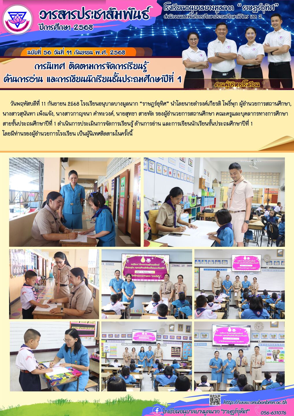 การนิเทศ ติดตามการจัดการเรียนรู้ ด้านการอ่าน และการเขียนนักเรียนชั้นประถมศึกษาปีที่ 1