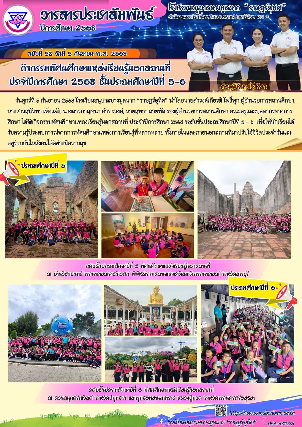 กิจกรรมทัศนศึกษาแหล่งเรียนรู้นอกสถานที่ ประจำปีการศึกษา 2568 ชั้นประถมศึกษาปีที่ 5-6