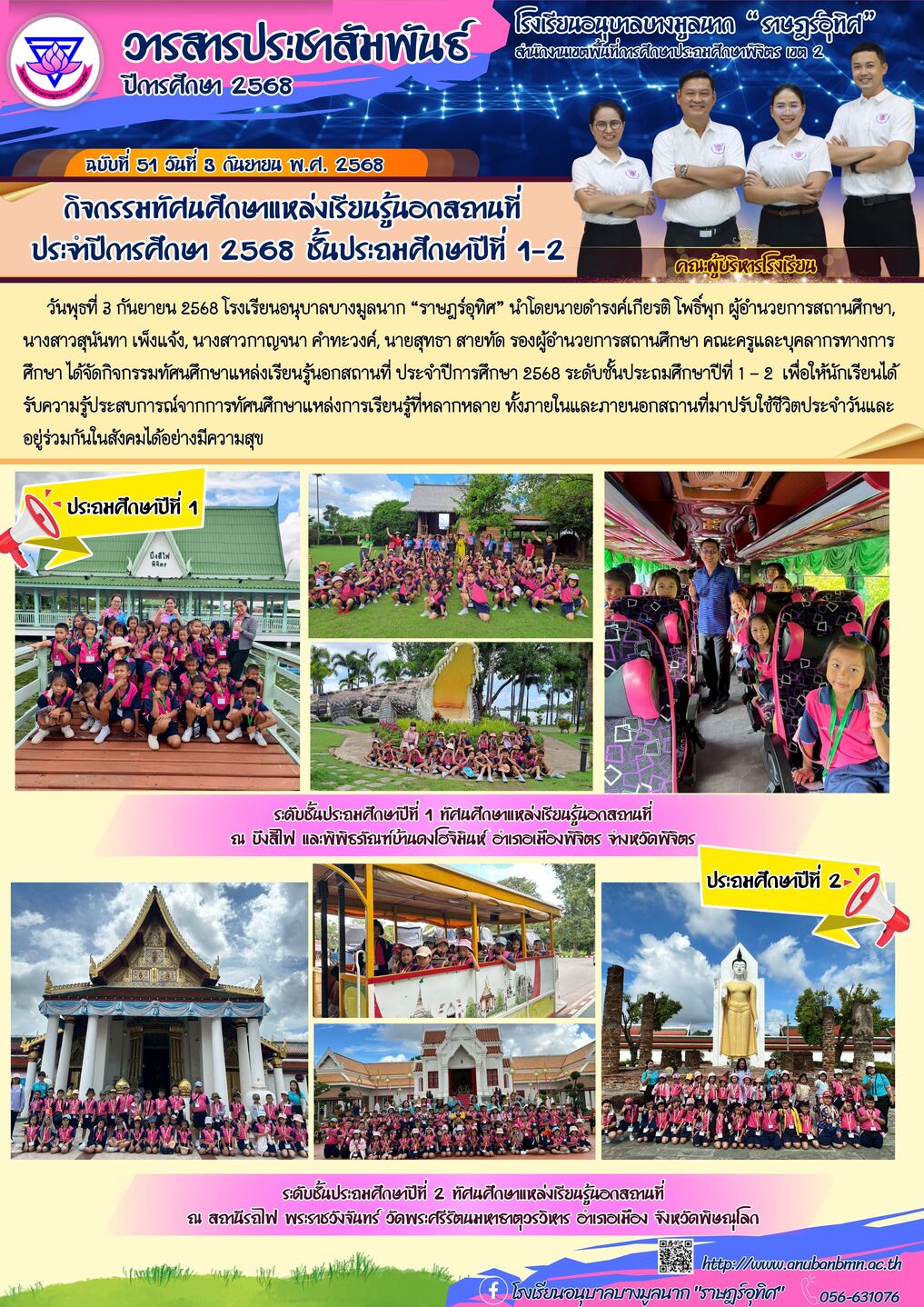 กิจกรรมทัศนศึกษาแหล่งเรียนรู้นอกสถานที่ ประจำปีการศึกษา 2568 ชั้นประถมศึกษาปีที่ 1-2
