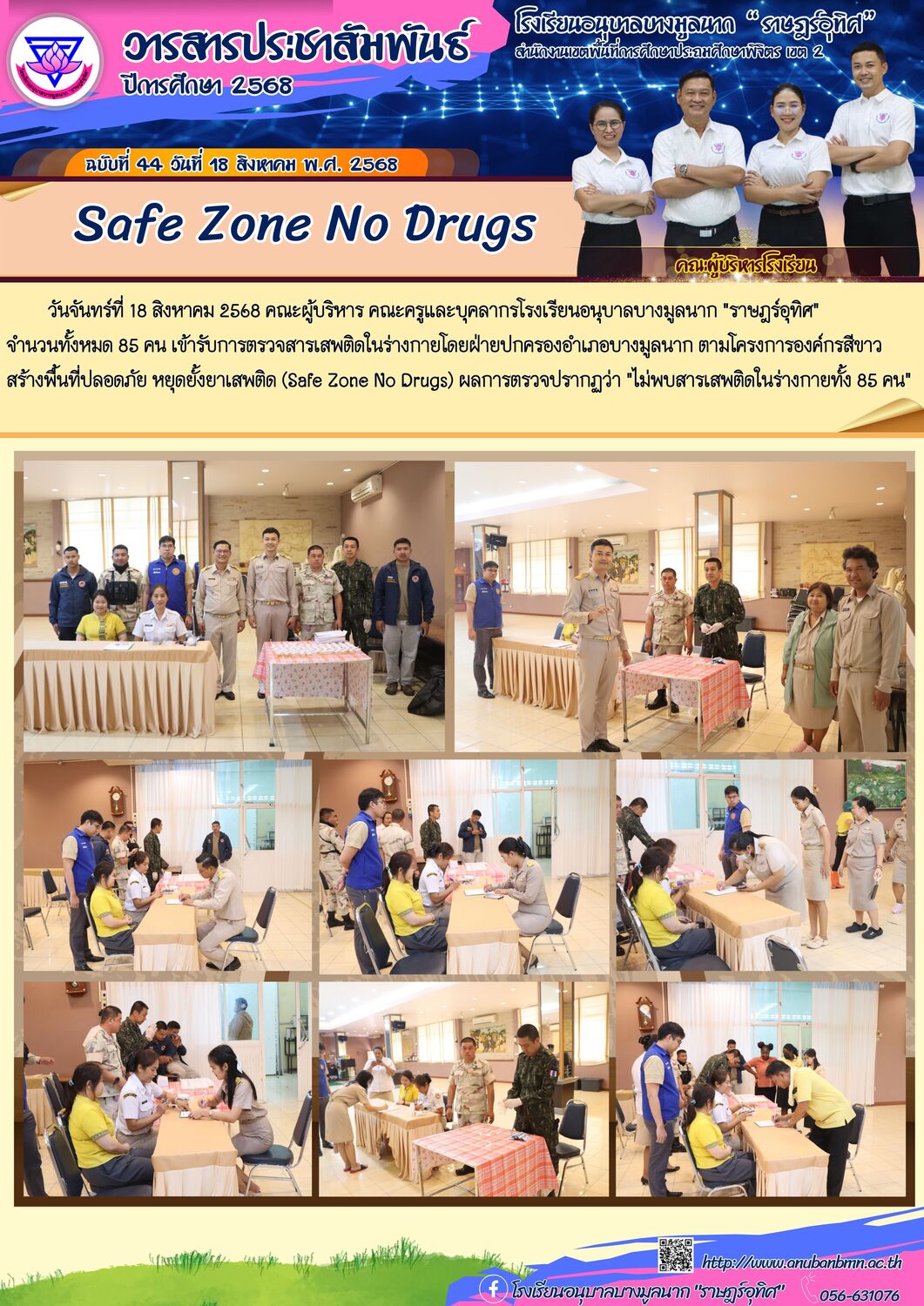 วันจันทร์ที่ 18 สิงหาคม 2568 คณะผู้บริหาร คณะครูและบุคลากรโรงเรียนอนุบาลบางมูลนาก "ราษฎร์อุทิศ" จำนวนทั้งหมด 85 คน เข้ารับการตรวจสารเสพติดในร่างกายโดยฝ่ายปกครองอำเภอบางมูลนาก ตามโครงการองค์กรสีขาว สร้างพื้นที่ปลอดภัย หยุดยั้งยาเสพติด (Safe Zone No Drugs) ผลการตรวจปรากฏว่า "ไม่พบสารเสพติดในร่างกายทั้ง 85 คน" |