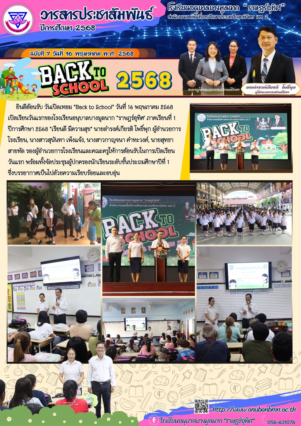 ยินดีต้อนรับ วันเปิดเทอม "Back to School" วันที่ 16 พฤษภาคม 2568 เปิดเรียนวันแรกของโรงเรียนอนุบาลบางมูลนาก "ราษฎร์อุทิศ' ภาคเรียนที่ 1 ปีการศึกษา 2568 "เรียนดี มีความสุข" นายดำรงค์เกียรติ โพธิ์พุก ผู้อำนวยการโรงเรียน, นางสาวสุนันทา เพ็งแจ้ง, นางสาวกาญจนา คำทะวงค์, นายสุทธา สายทัด รองผู้อำนวยการโรงเรียนและคณะครูให้การต้อนรับในการเปิดเรียนวันแรก พร้อมทั้งจัดประชุมผู้ปกครองนักเรียนระดับชั้นประถมศึกษาปีที่ 1 ซึ่งบรรยากาศเป็นไปด้วยความเรียบร้อยและอบอุ่น |