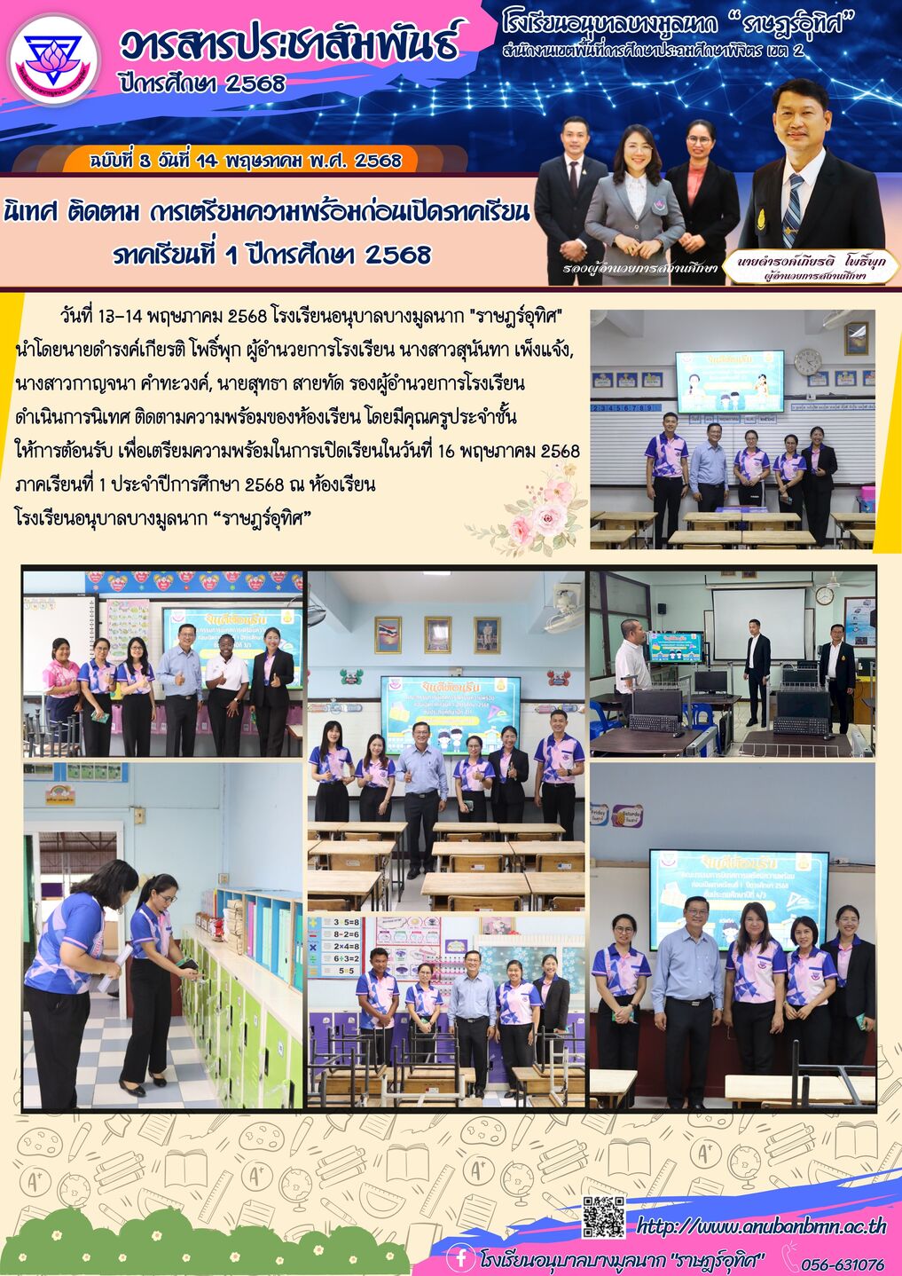 นิเทศ ติดตาม การเตรียมความพร้อมก่อนเปิดภาคเรียน ภาคเรียนที่ 1 ปีการศึกษา 2568
