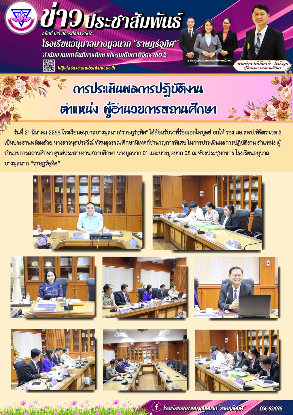 วันที่ 21 มีนาคม 2568 โรงเรียนอนุบาลบางมูลนาก"ราษฎร์อุทิศ" ได้ต้อนรับว่าที่ร้อยเอกไพบูลย์ ยกให้ รอง ผอ.สพป.พิจิตร เขต 2 เป็นประธานพร้อมด้วย นางสาวนุตประวีณ์ ทัศนสุวรรณ ศึกษานิเทศก์ชำนาญการพิเศษ ในการประเมินผลการปฏิบัติงาน ตำแหน่ง ผู้อำนวยการสถานศึกษา ศูนย์ประสานงานสถานศึกษา บางมูลนาก 01 และบางมูลนาก 02 ณ ห้องประชุมกชกร โรงเรียนอนุบาลบางมูลนาก “ราษฎร์อุทิศ” |