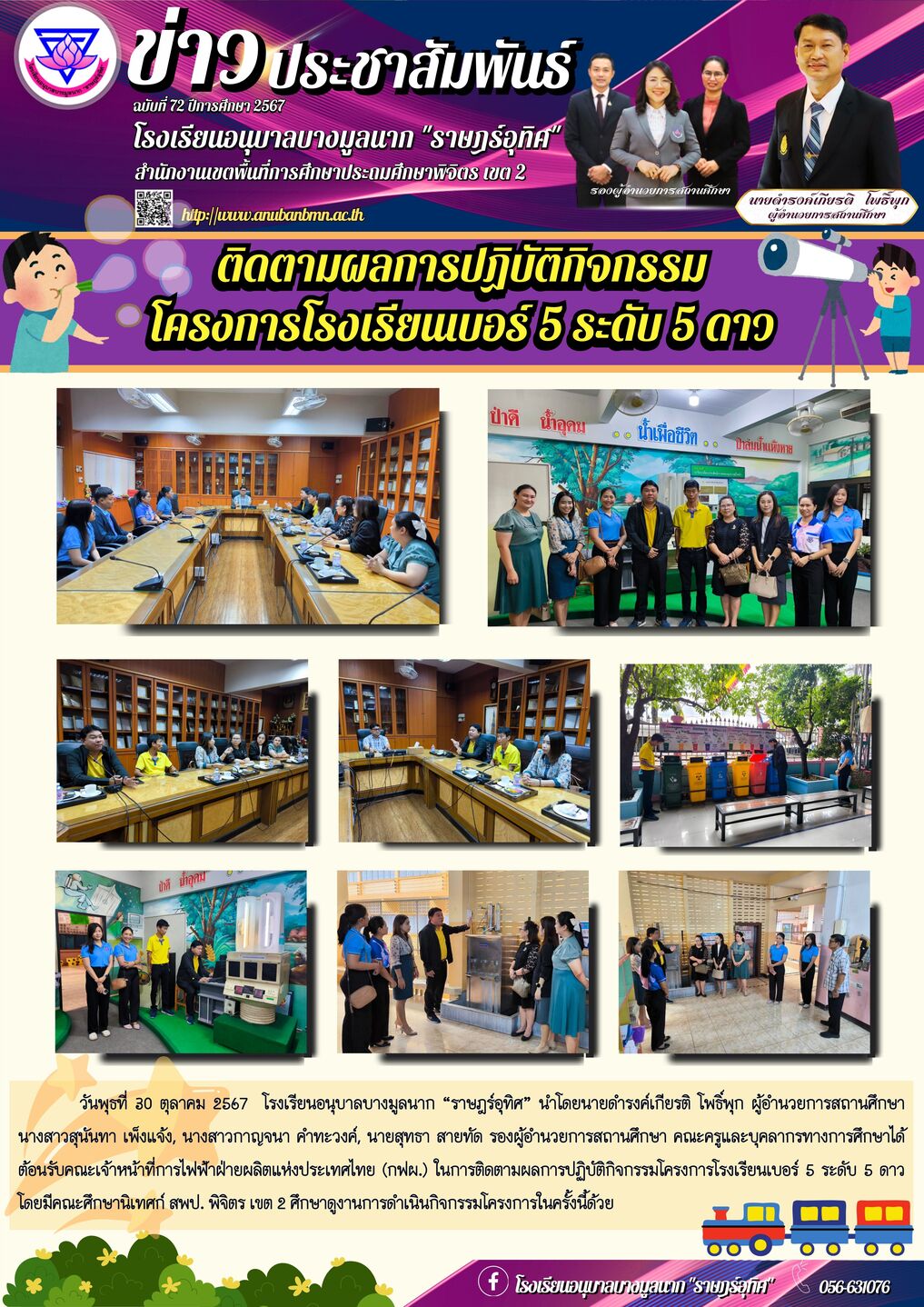 ติดตามผลการปฏิบัติกิจกรรม โครงการโรงเรียนเบอร์ 5 ระดับ 5 ดาว