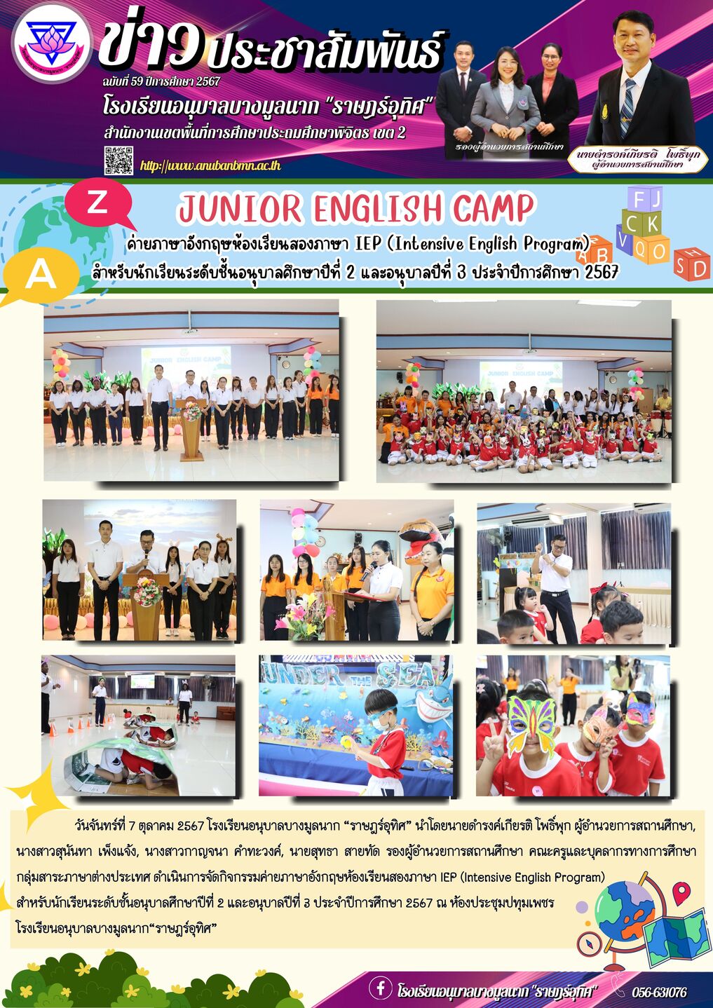ค่ายภาษาอังกฤษห้องเรียนสองภาษา IEP (Intensive English Program) สำหรับนักเรียนระดับชั้นอนุบาลศึกษาปีที่ 2 และอนุบาลปีที่ 3 ประจำปีการศึกษา 2567