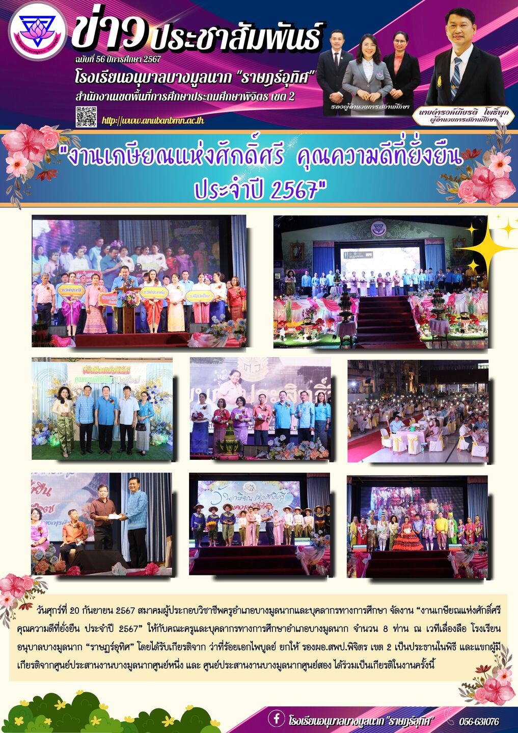 | วันศุกร์ที่ 20 กันยายน 2567 สมาคมผู้ประกอบวิชาชีพครูอำเภอบางมูลนากและบุคลากรทางการศึกษา จัดงาน “งานเกษียณแห่งศักดิ์ศรีคุณความดีที่ยั่งยืน ประจำปี 2567” ให้กับคณะครูและบุคลากรทางการศึกษาอำเภอบางมูลนาก จำนวน 8 ท่าน ณ เวทีเลื่องลือ โรงเรียนอนุบาลบางมูลนาก “ราษฏร์อุทิศ” โดยได้รับเกียรติจาก ว่าที่ร้อยเอกไพบูลย์ ยกให้ รองผอ.สพป.พิจิตร เขต 2 เป็นประธานในพิธี และแขกผู้มีเกียรติจากศูนย์ประสานงานบางมูลนากศูนย์หนึ่ง และ ศูนย์ประสานงานบางมูลนากศูนย์สอง ได้ร่วมเป็นเกียรติในงานครั้งนี้ |