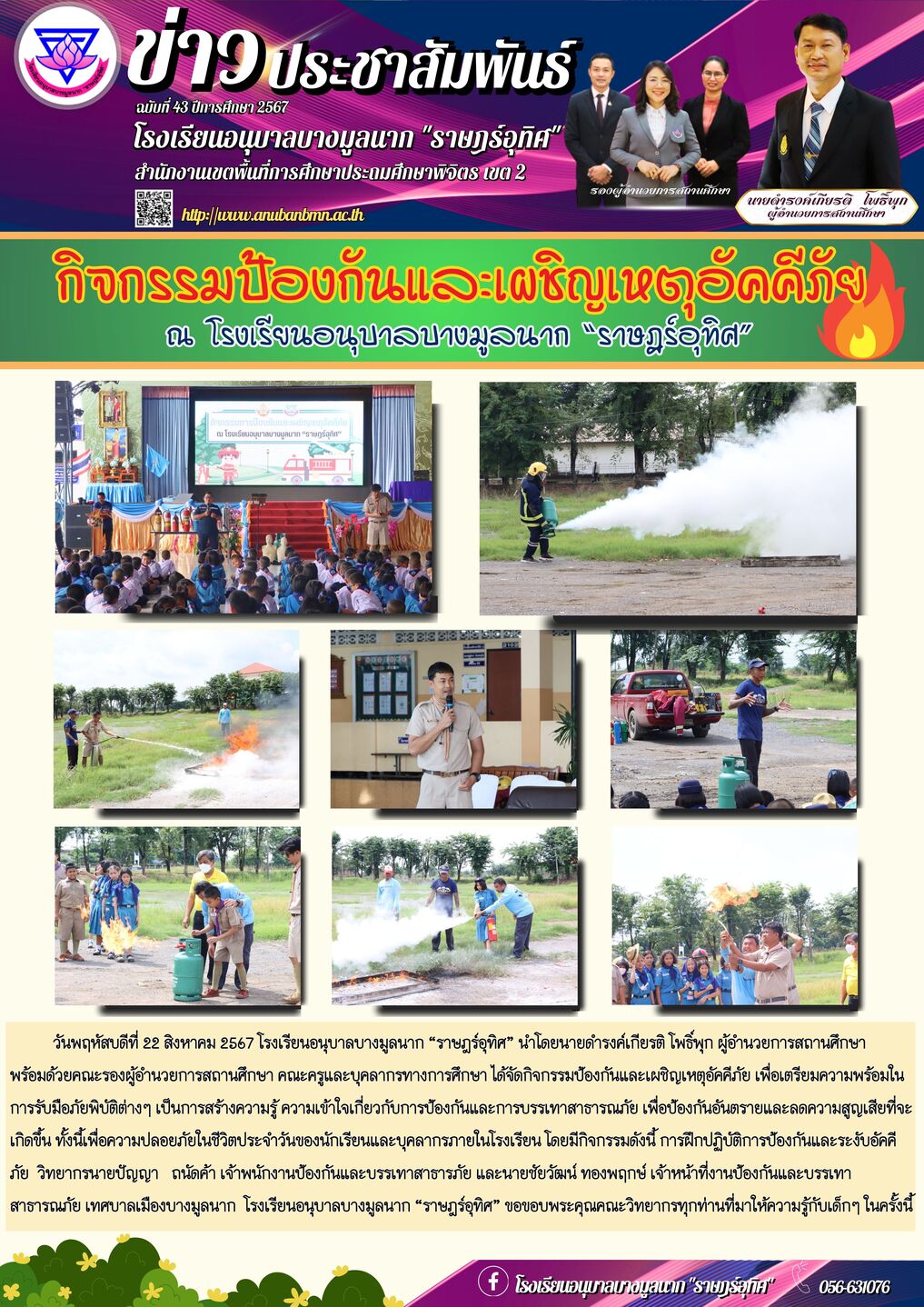 กิจกรรมป้องกันและเผชิญเหตุอัคคีภัย ณ โรงเรียนอนุบาลบางมูลนาก “ราษฎร์อุทิศ”